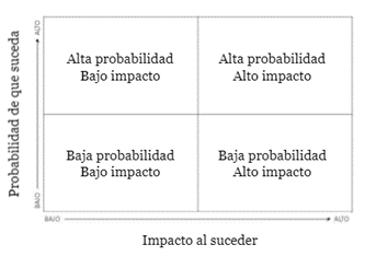 Se somete entonces a cada riesgo definido a la evaluación de la probabilidad de que suceda, generalmente considerando la cantidad de veces que puede darse a lo largo de un plazo de tiempo determinado (normalmente un año) sobre el total de eventos, y de la dimensión de impacto sobre los objetivos empresariales.