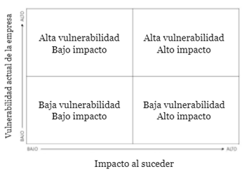 Respecto de los riesgos residuales, ante una baja vulnerabilidad y un bajo impacto será necesario reubicar recursos; ante una baja vulnerabilidad y un alto impacto tendremos que reasegurar la preparación para el impacto; ante una alta vulnerabilidad y un bajo impacto, evaluar impactos acumulativos; y finalmente, ante una alta vulnerabilidad y un alto impacto, aumentar las medidas de mitigación del riesgo.