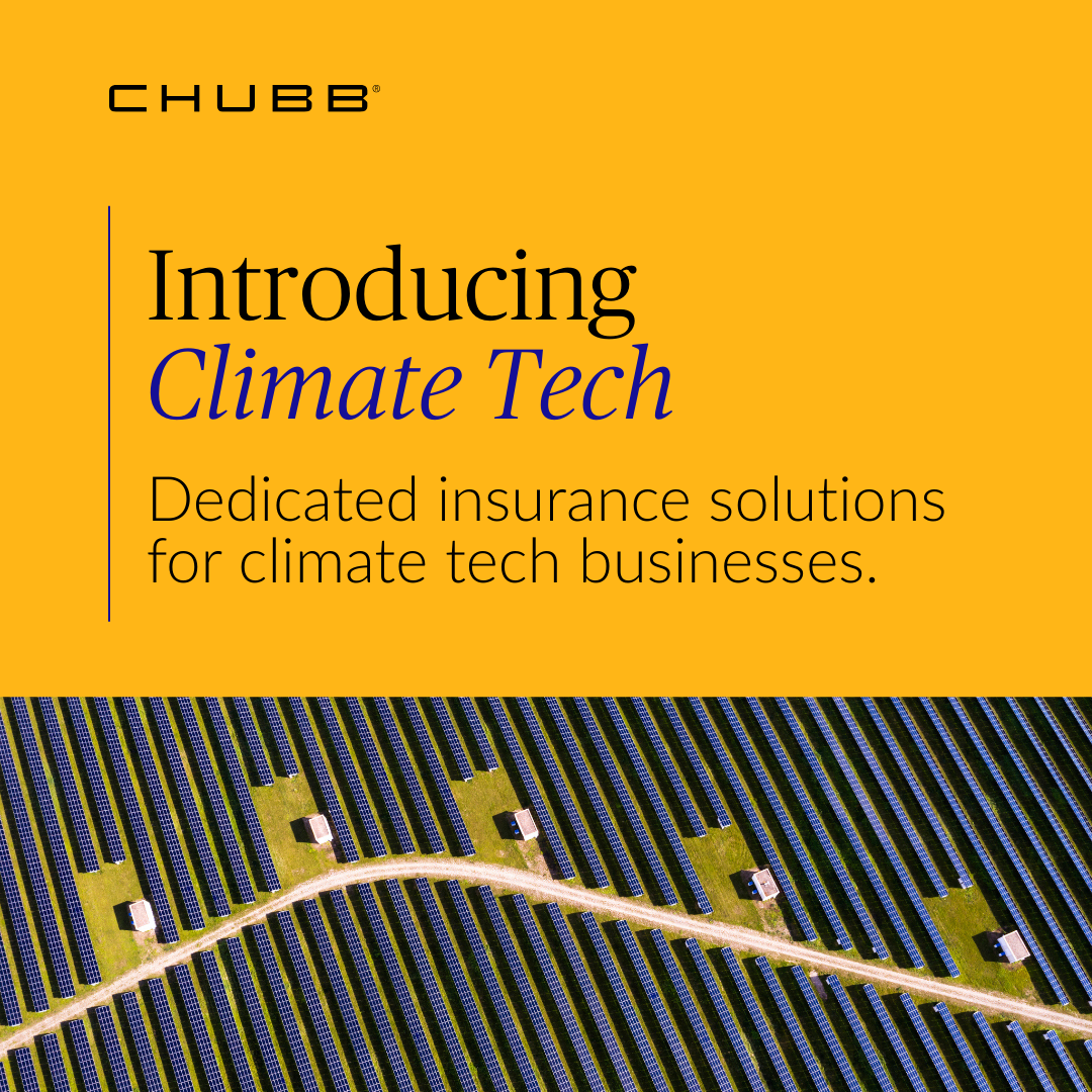Chubb launches its newest industry practice - Climate Tech: We have developed a bespoke wording tailored to the unique risks of companies working towards climate change progress.