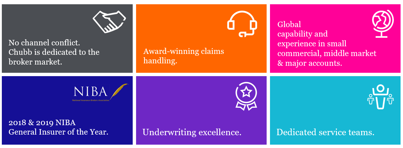 Chubb has a suite of Property & Casualty products offered on our trading platform, Marketplace, which integrates with existing industry distribution platforms such as Sunrise, SCTP and direct broker portals.
