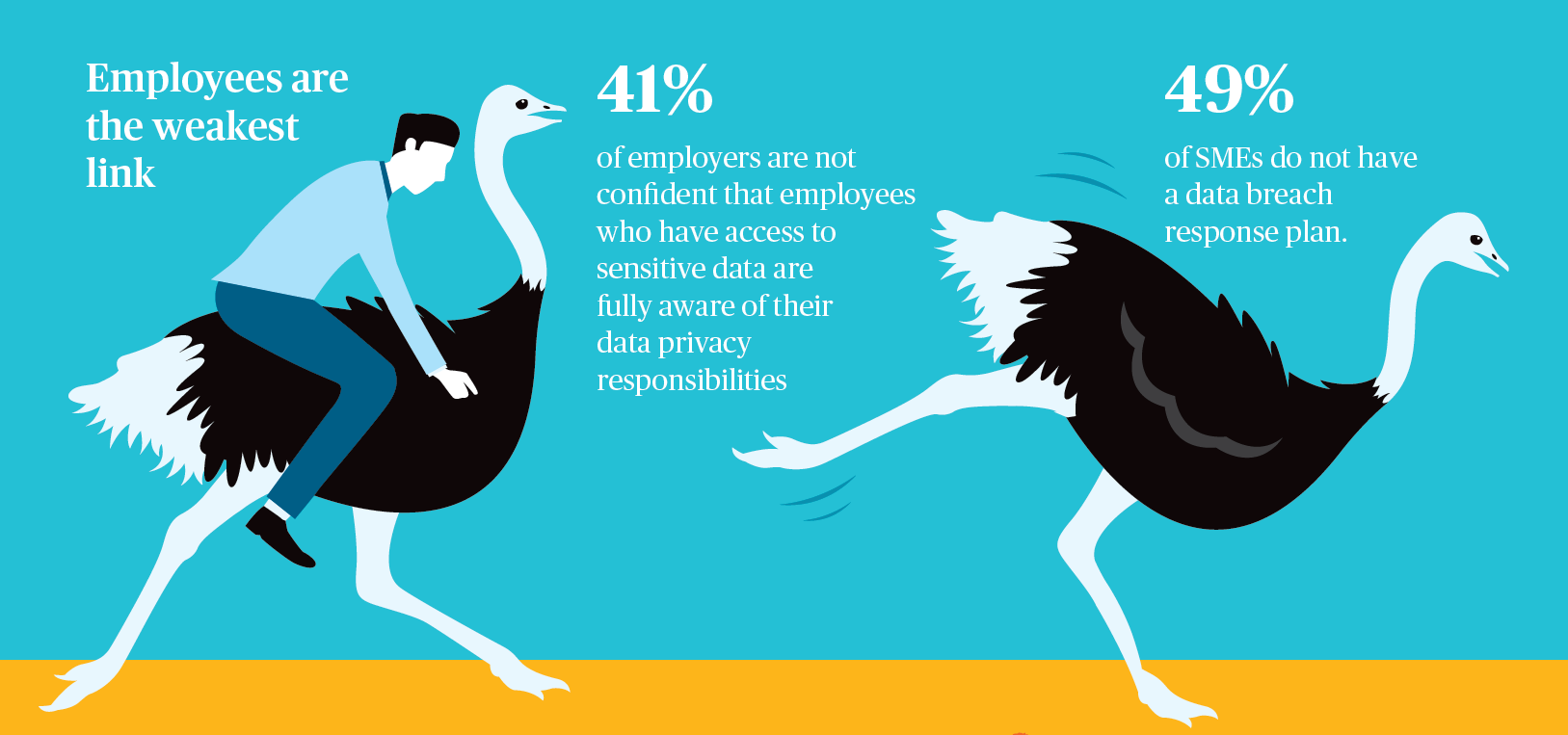 In fact, 49% of SMEs have experienced a cyber incident in the past year. Employers are also not confident (41%) that their employees who have access to sensitive data are fully aware of their data privacy responsibilities. Yet, less than half (49%) of SMEs have a data breach response plan.