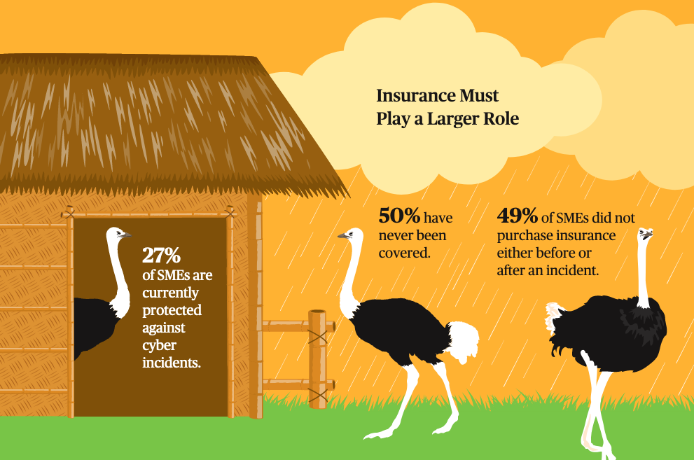 Currently, only one quarter (27%) of SMEs have cyber risk insurance, while half (50%) have never been covered. Nearly one in ten (9%) have let their cover lapse while a further 14% weren’t sure if they have cover or not. Half (49%) of SMEs did not purchase insurance either before or after an incident – still a high number, but an improvement on the 62% from 2018.