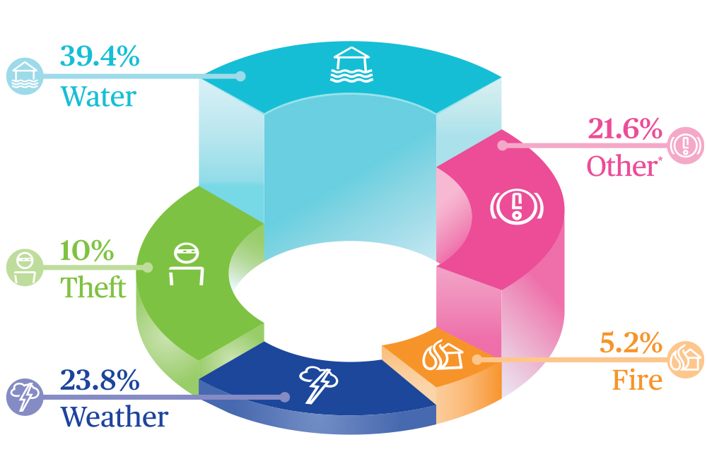A review of Chubb's proprietary data reveals that water damage claims are now more costly than any other household incident, including fire and burglary. However, while most homeowners have locks, alarm systems and fire detectors installed, most are unaware of the threat of water damage and therefore largely unprepared for an incident.