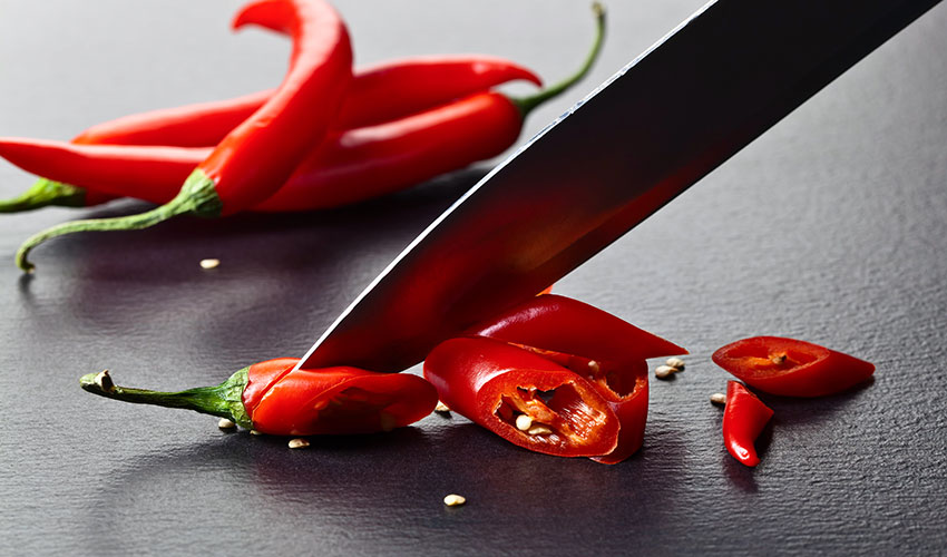 While the natural oils from chillies may not cause actual damage to your eyes, it sure can hurt! To prevent getting chilli oils into your eyes, use rubber gloves when cutting or handling them or coat your hands with vegetable oil before carefully chopping.