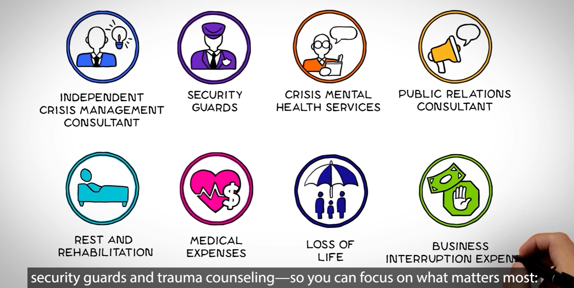 Your employees are the life-blood of your company. Keeping them safe while at work is paramount. Therefore, managing and intercepting threats of violence directed at your business and your employees must be a critical component of your business’s workplace violence risk management program. Watch this video to learn more about Chubb's Workplace Violence Expense Insurance.