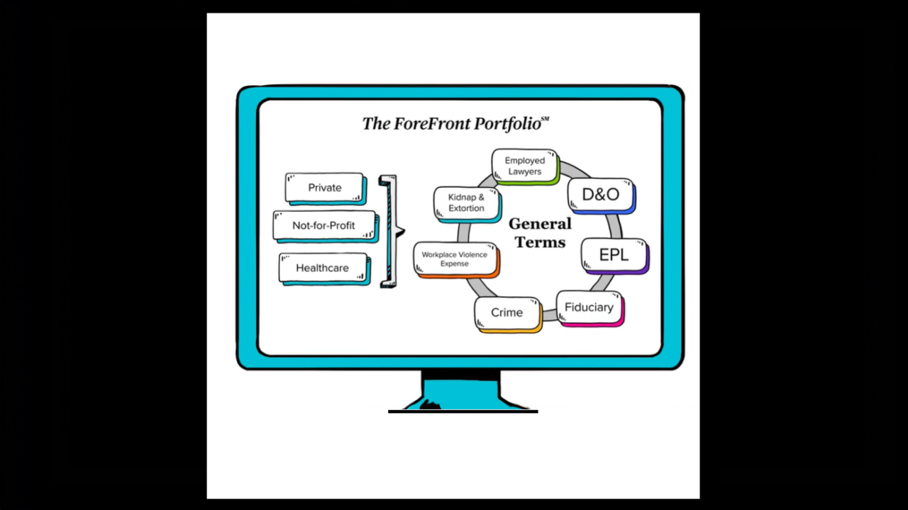 Click through this carousel to watch short, educational videos, including an overview of The ForeFront Portfolio product package, as well as specific coverages, like Employment Practices Liability, Fiduciary Liability, and Crime Insurance.