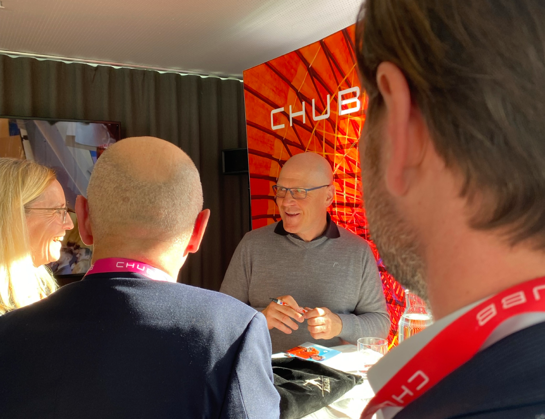 Im ersten Teil kamen langjährige Mitarbeitende von Chubb per Videoaufzeichnung zu Wort. So meinte Christian Stachel, Claims Manager Central Region, stolz: «Es waren echte Pioniertage, als ich mit ca. 15 weiteren Mitarbeitern im Jahr 2004 gestartet habe. Zu Beginn mit einem überschaubaren Produktangebot, konnten wir durch das interne und externe Vertrauen immer mehr Sparten anbieten und zählen heute zu den führenden Anbietern von internationalen Versicherungen in der Schweiz». Oder Ueli Stalder, Life Science Manager erzählte von seinen Anfängen bei Chubb: «Als ich im Jahr 2005 bei Chubb angefangen hatte, herrschte eine sehr familiäre Stimmung vor. Im Vergleich zu damals ist der Life Science-Bestand nun 10-mal grösser und wir sind ein Team von fünf Personen, die sich um Life Sciences Unternehmen kümmern. Das ganze Team der Chubb ist seit Beginn stark gewachsen, aktuell besteht das diverse Team aus knapp 100 Personen, welche sich um die Bedürfnisse der Kundschaft kümmert.»