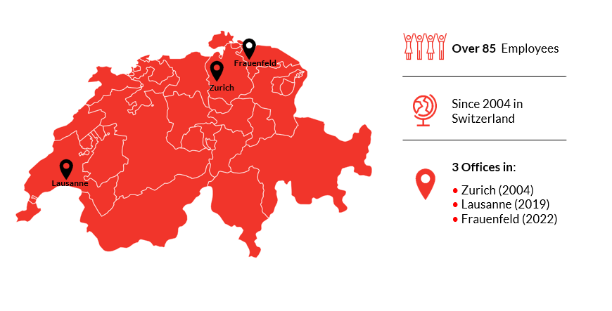 Central. Nos bureaux bénéficient d'un accès de premier ordre au cœur de la ville de Zurich et à Lausanne, respectivement à 7 minutes et à 1 minute de la gare centrale.