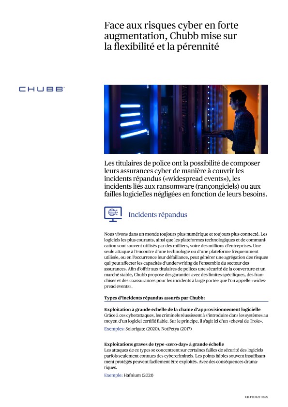 L'approche de Chubb contribue à garantir aux preneurs d'assurance une plus grande sécurité de couverture et un marché stable pour la cyberassurance.