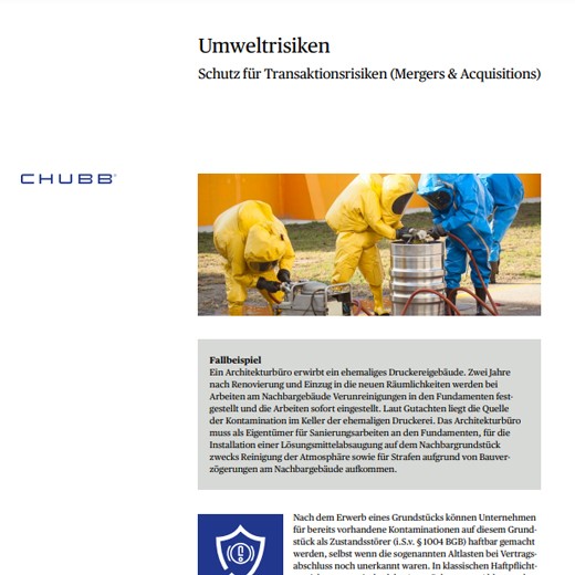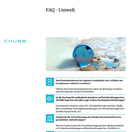 Sichern Sie Ihr Unternehmen mit unseren speziellen Umweltkonzepten umfassend ab. Sie können Ihr multinationales Haftpflichtprogramm auch um eine Umweltversicherung ergänzen, damit ebenfalls Ihre ausländischen Standorte gegen Umweltrisiken geschützt sind.