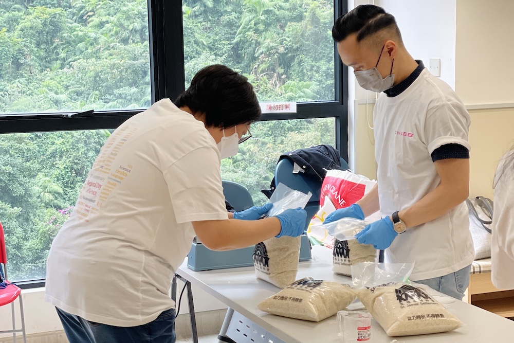 Together we packed over 1,100 kg of rice into smaller portions for distribution to over 560 families supported by St. James.