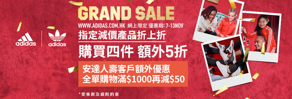 From 28 October to 13 November 2022 (both days inclusive), customer can enjoy HK$50 off on spending HK$1,000 or above on selected items at the official online store of adidas at https://www.adidas.com.hk (“Online Store”) when using the “adidas x AEON $50 E-Coupon” (“ e-Coupon”).
