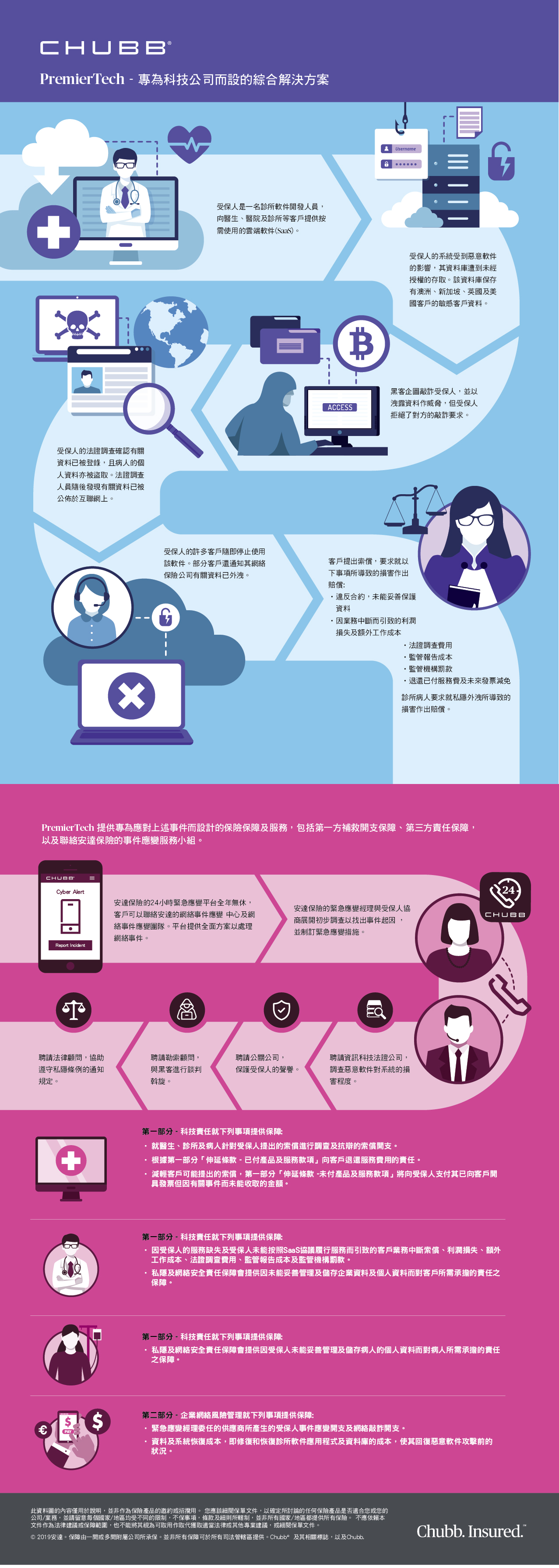 • 針對未能保護電腦系統安全或未能保密個人或企業資料而設的私隱及網絡安全責任保障,包括由此產生的監管機構罰款。