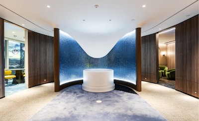 Chubb 1792 Club 的空間設計以水為主題,象徵生命力與連接,亦呼應安達源於海事保險的開拓精神,以水為紐帶創造凝聚信任、啟發機遇的空間。