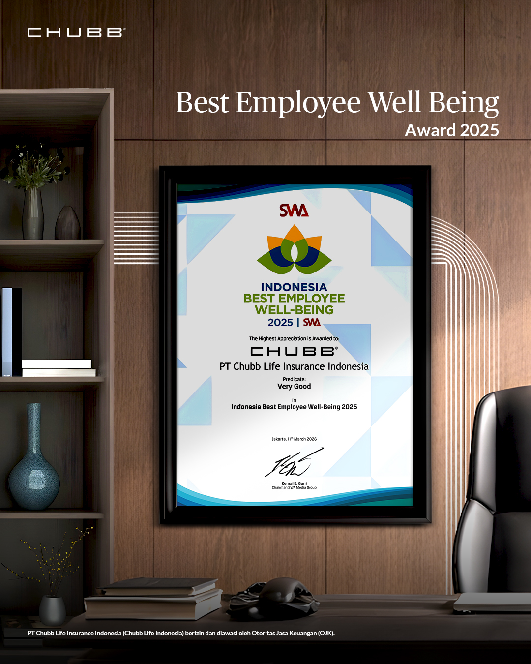 4. Chubb Life Indonesia meraih penghargaan Indonesia Best Employee Well-Being Award 2025 (Predikat “Very Good”) dari SWA & Business Digest Media Group pada 11 Maret 2026.