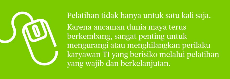 Dengan human error (atau kesalahan yang tidak disengaja) menjadi penyebab paling umum dari serangan siber, pendidikan karyawan menjadi sangat penting. Pelatihan mengenali malware, rekayasa sosial, dan metode phishing dapat membantu karyawan menjadi garis pertahanan pertama untuk mencegah penyusupan yang tidak sah.