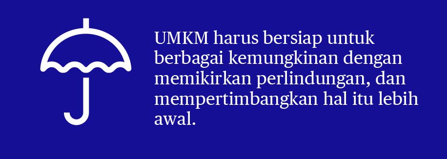 Sementara asuransi UKM, atau asuransi bisnis yang lebih luas, tidak diwajibkan di Indonesia, memiliki cakupan memadai yang dapat menjadi jaring pengaman penting yang harus dimiliki setiap usaha kecil. Lagi pula, pepatah bahasa Indonesia terkenal mengatakan, “sedia payung sebelum hujan”, yang secara harfiah berarti memiliki payung di tangan sebelum hujan.