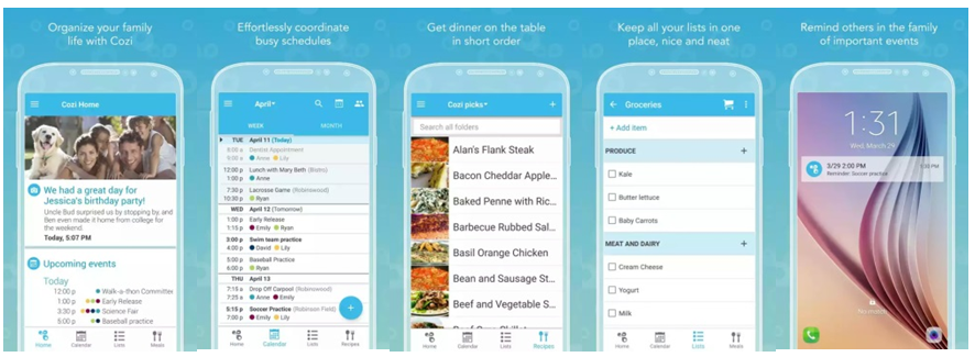 Cozi merupakan aplikasi yang menawarkan kemudahan untuk mengatur jadwal harian keluarga, termasuk menyusun daftar belanjaan, to do list, dan kumpulan resep serta sarana jurnal untuk keluarga. Anggota keluarga dapat berbagi semua informasi ke dalam satu aplikasi yang akan mensinkronisasi semuanya. Menarik, bukan?