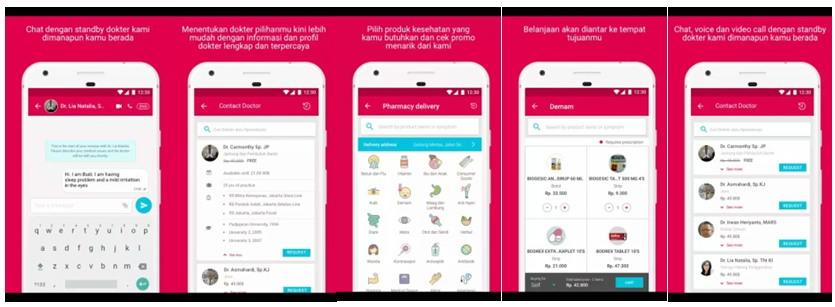 Halodoc merupakan aplikasi kesehatan seperti “kotak P3K berjalan” yang memberikan kemudahan dalam menjaga dan memeriksa kesehatan Anda dan keluarga. Halodoc memberikan layanan untuk konsultasi dengan dokter melalui chat dan video/voice call, serta layanan pembelian dan pengantaran obat-obatan dari apotek terdekat.