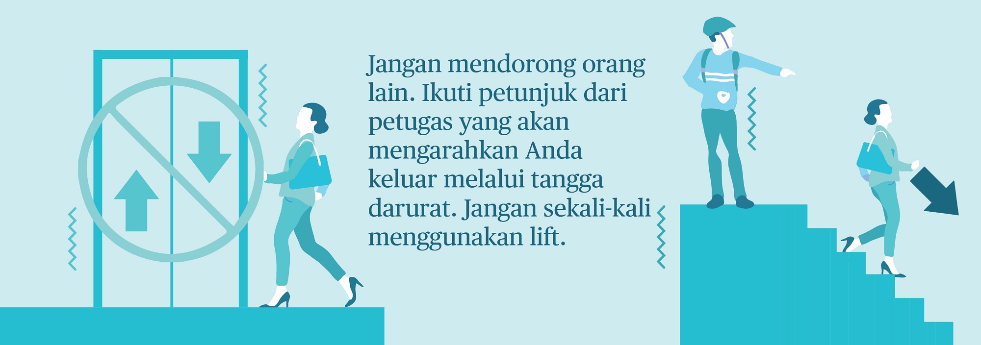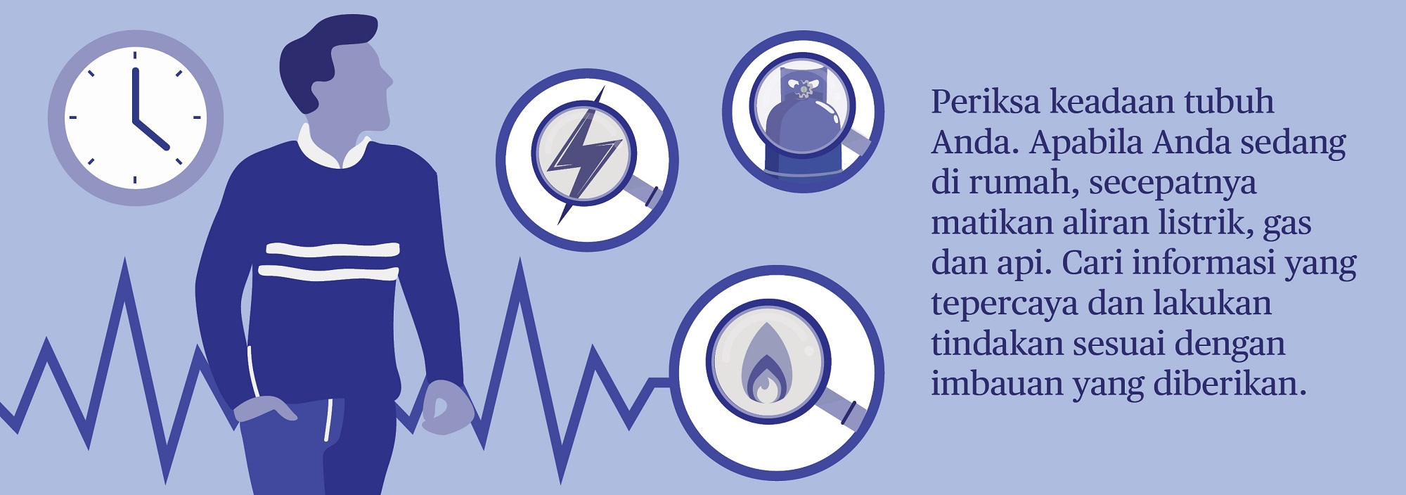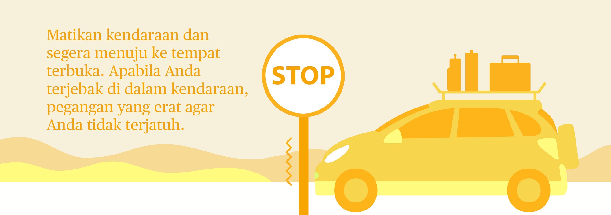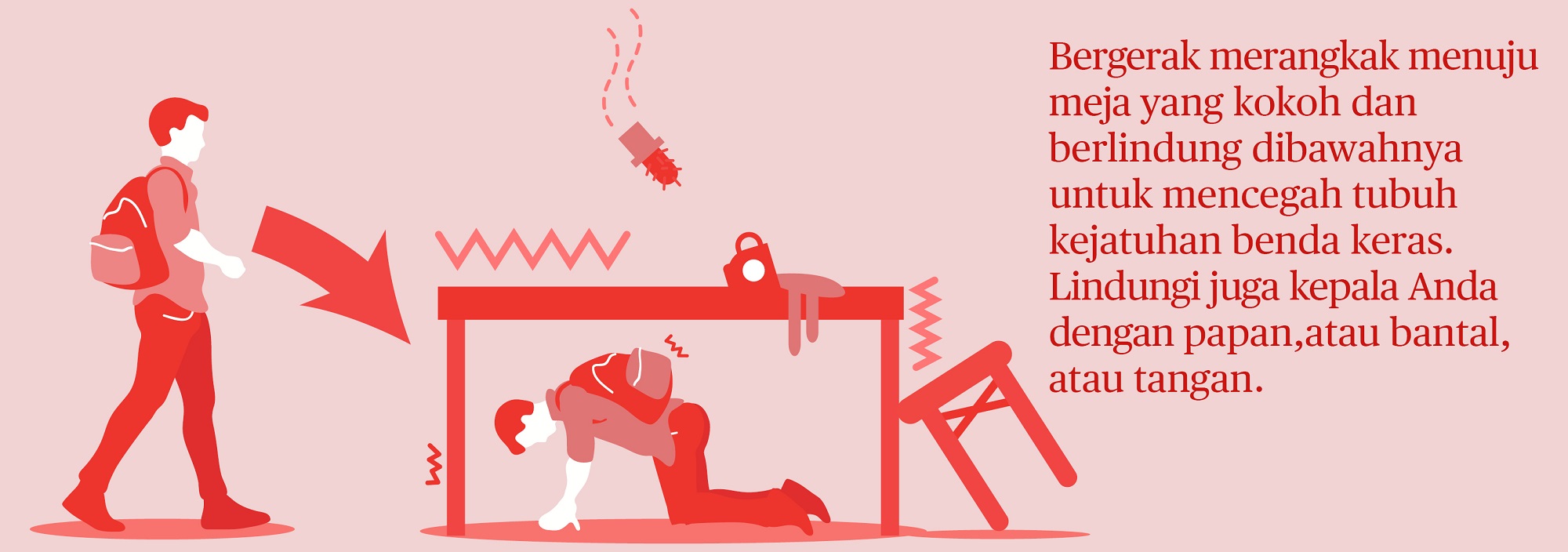Ketika gempa bumi terasa, tetap tenang, jangan panik dan lakukan hal-hal berikut: