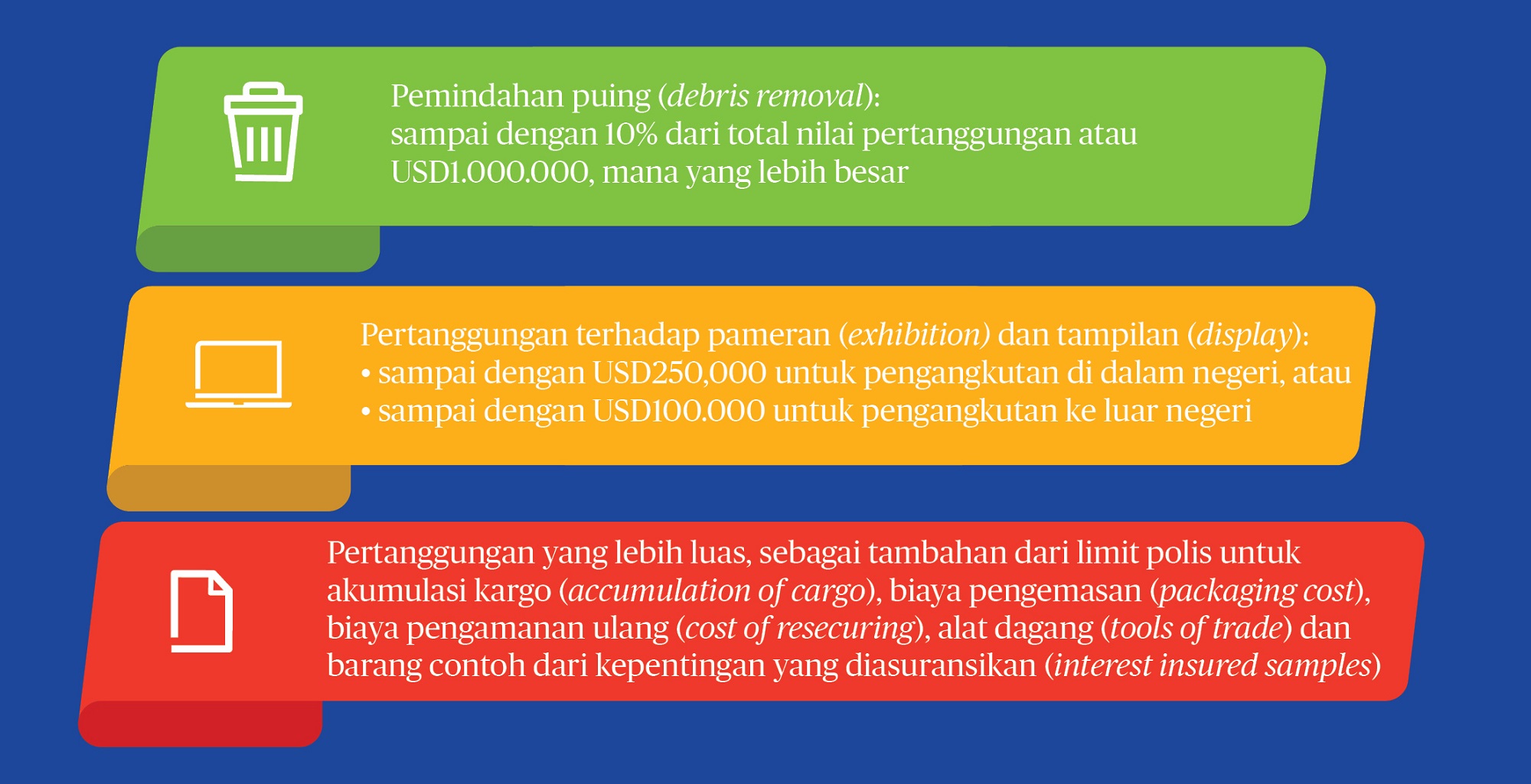 SM adalah polis Asuransi Marine Cargo konvensional dalam versi yang disempurnakan dengan lebih dari 30 manfaat tambahan untuk pengangkutan kargo ke luar negeri dan 20 manfaat tambahan untuk pengangkutan kargo dalam negeri.