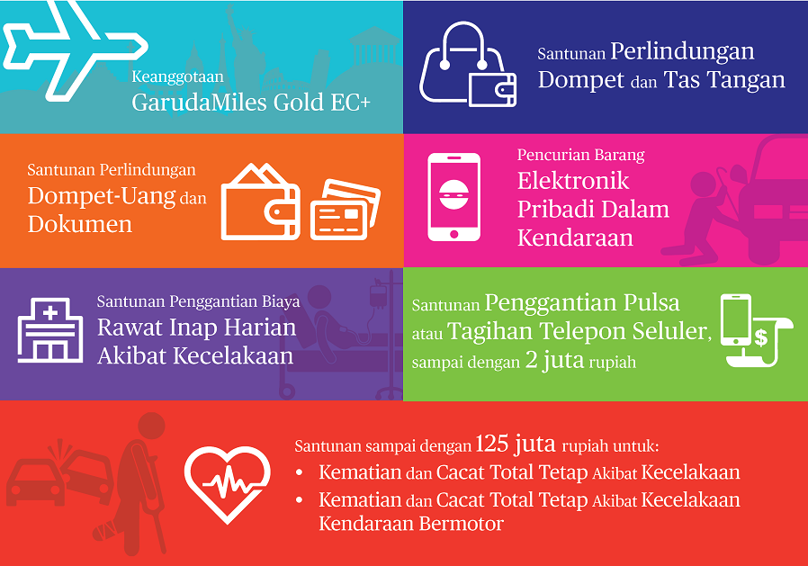 Selain memberikan perlindungan asuransi untuk kecelakaan diri dan kesehatan serta untuk barang-barang pribadi Anda, produk ini juga memberikan manfaat yang istimewa, dimana tingkatan keanggotaan GarudaMiles Anda akan terjaga manakala terjadi insiden kecelakaan yang menyebabkan Anda di rawat inap di rumah sakit.