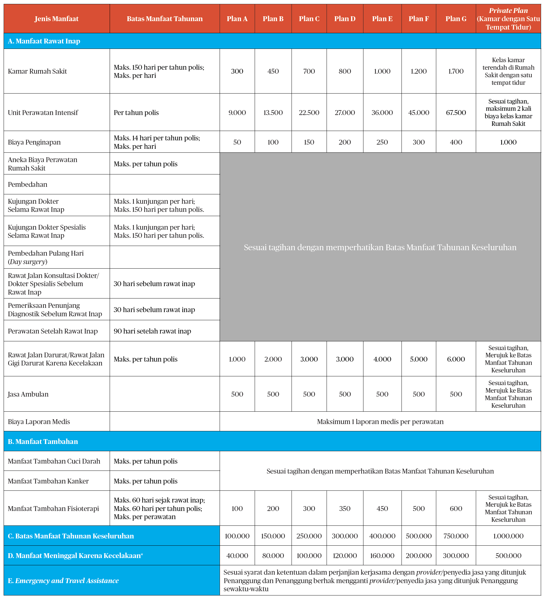 Tabel Manfaat di atas tidak mengikat dan dapat mengalami perubahan.
