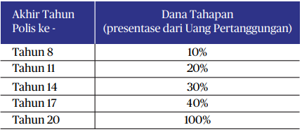 Pembayaran manfaat tunai akan dilakukan pada tanggal jatuh temponya sesuai pilihan dari Pemegang Polis, yaitu: