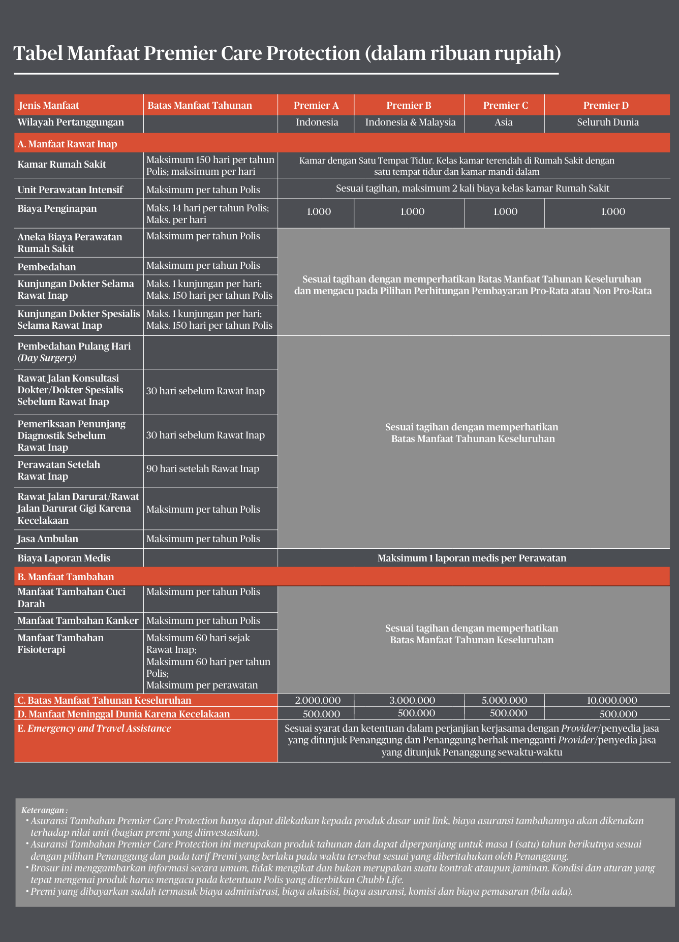 Premier Care Protection, manfaat perawatan kesehatan lengkap dengan perlindungan hingga ke seluruh dunia.