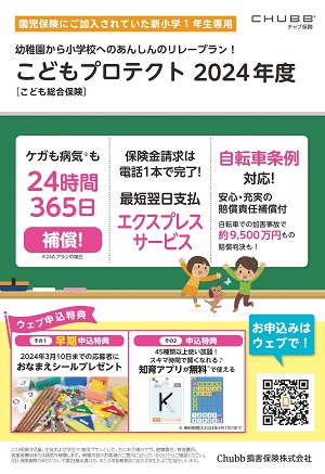 こども(満23歳未満または、学校教育法に定める所定の学校の学生および生徒)を対象として、国内外を問わず日常生活におけるケガや賠償損害を補償します。