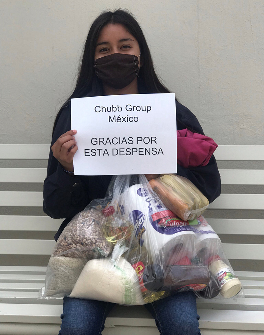En México, los empleados de Chubb están invitados a donar a la asociación “Iluminando con Amor”, una organización sin fines de lucro enfocada en apoyar al personal médico que atiende a pacientes con COVID-19. Las donaciones de los empleados serán igualadas por la empresa. El dinero recaudado beneficiará a tres centros médicos diferentes: Dispensario Médico San Camilo (Guadalajara); Casa INDI (Monterrey); y Hospital de Enfermedades Respiratorias (Ciudad de México).