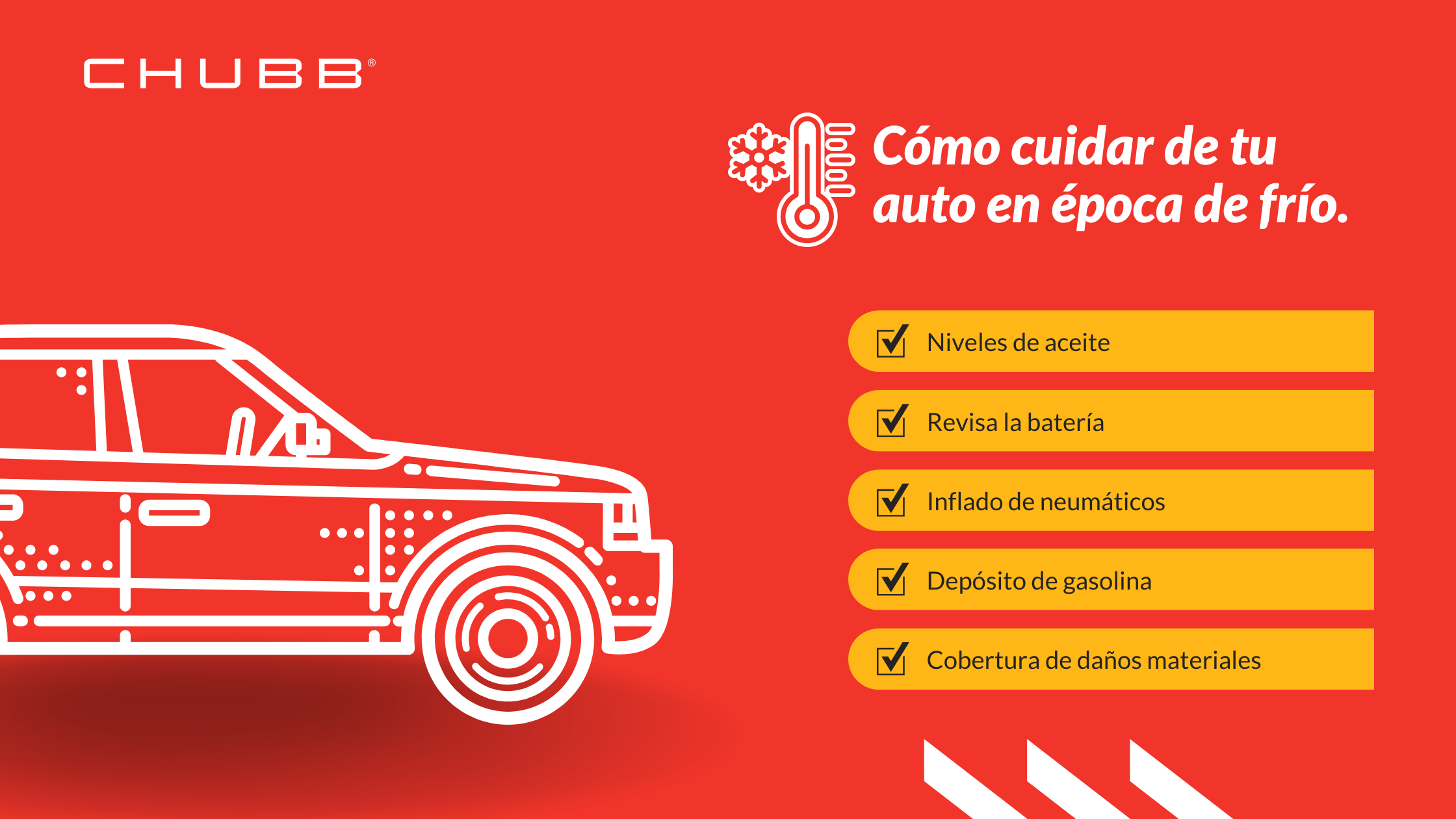 El presente material no está destinado a proporcionar asesoría legal y/o de cualquier otra índole en relación con cualquiera de los temas mencionados, ya que se destina únicamente para fines informativos. Para cualquier duda legal o técnica, se deberá consultar a un asesor legal u otros expertos con conocimiento en materia legal o técnica. Chubb es el nombre comercial que se utiliza para referirse a las subsidiarias de Chubb Limited que proveen seguros y servicios relacionados. Para obtener la lista de subsidiarias consulte en el sitio web https://www.chubb.com/mx-es/ Los seguros son proporcionados por Chubb Seguros México S.A. sujetos a términos y condiciones. Es posible que no todos los productos estén disponibles en todos los estados. Esta comunicación únicamente contiene resúmenes de los productos de Chubb Seguros México, S.A. los cuales están disponible en https://www.chubb.com/mx-es/condiciones-generales.html. La cobertura está sujeta al lenguaje en que las pólizas fueron emitidas. El Seguro de líneas excedentes solo se vende a través de personas con licencia para comercializarlo. Chubb, Av. Paseo de la Reforma No. 250, Torre Niza Piso 15, Colonia Juárez, Ayuntamiento Cuauhtémoc, C.P. 06600, Ciudad de México.