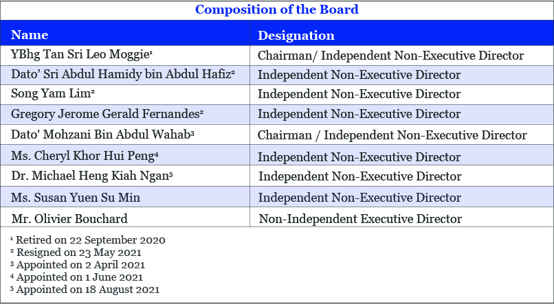 - Ensuring the criteria to conduct periodic evaluation for effectiveness of the Board and Board Committees are based on robust processes and procedures, taking into consideration the needs of the Board such as mix of skills, independence, experience and industry knowledge.