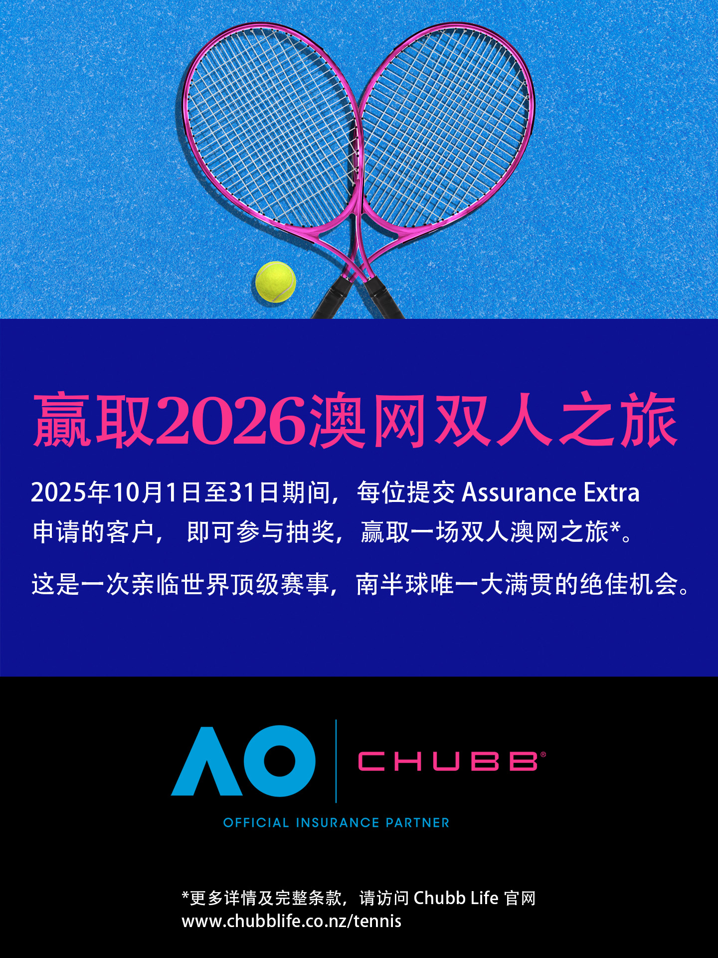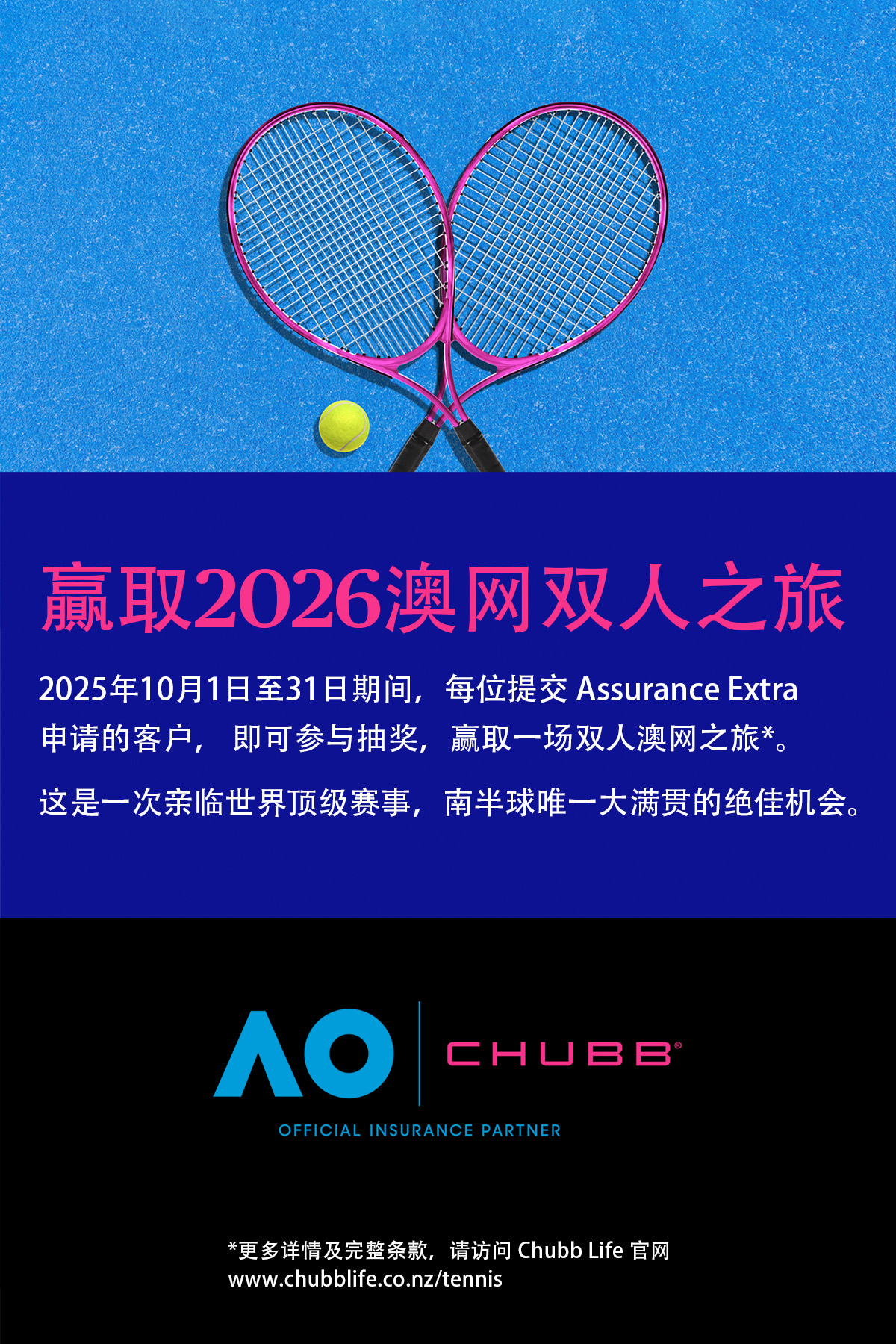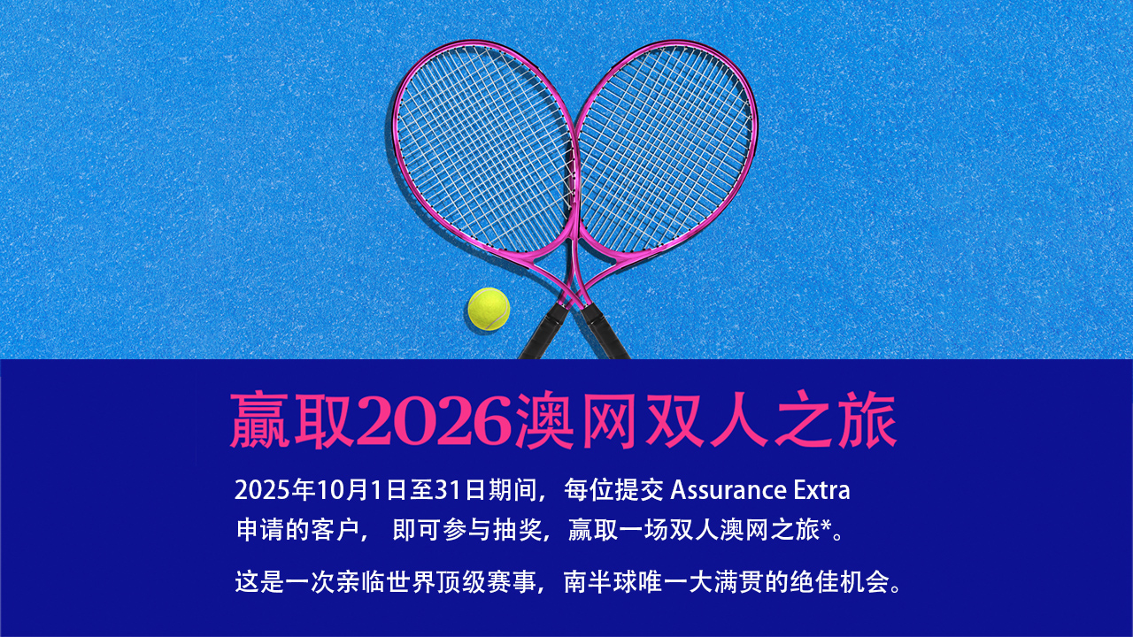 2025年10月1日至31日期间,每位提交 Assurance Extra 申请的客户, 即可参与抽奖,赢取一场双人澳网之旅*。