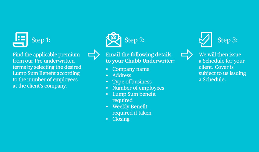 Chubb GPA can be used as a contractual benefit to staff, or the client can receive the benefits and then provide a range of payments and assistance in the event that an employee accidentally dies or suffers a serious injury.