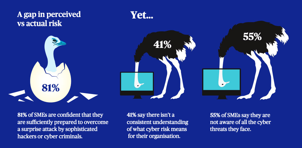 On one hand, 81% of SMEs are confident that they are sufficiently prepared to overcome a surprise attack by sophisticated hackers or cyber criminals.