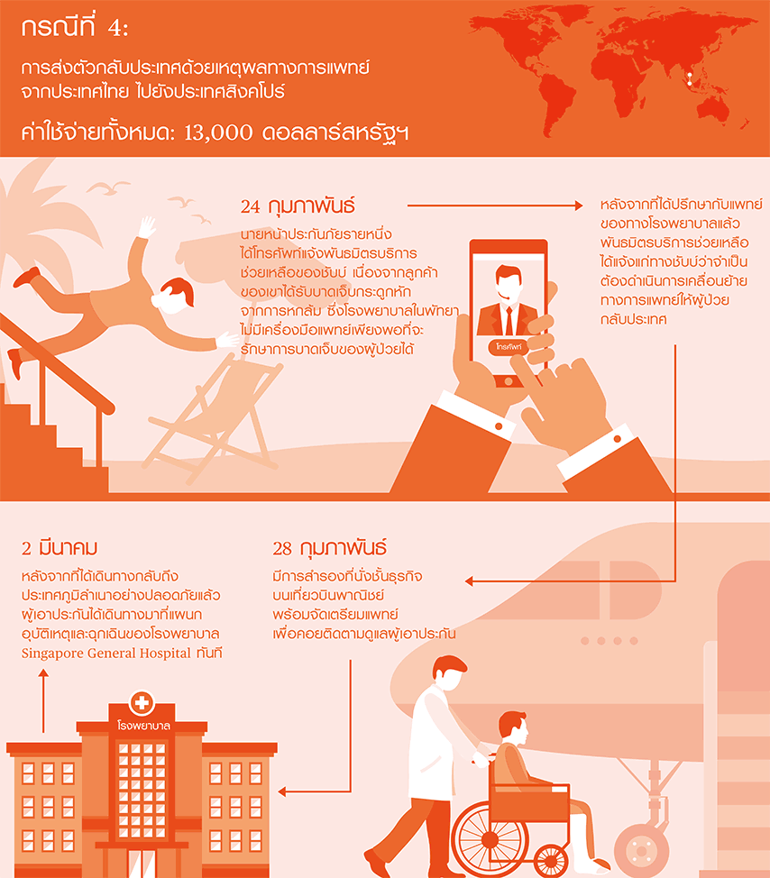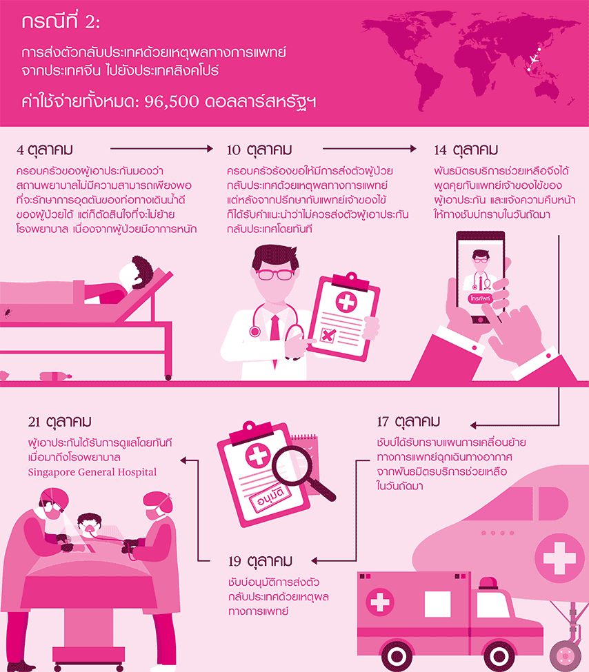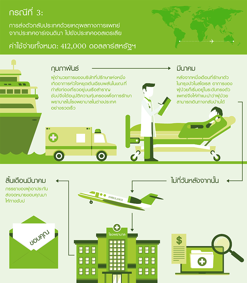 การเคลมประกันด้านการแพทย์ถือเป็นการเคลมประกันจากกรมธรรม์ประกันภัยการเดินทางเชิงธุรกิจที่มีตัวเลขสูงสุดเท่าที่มีการบันทึกข้อมูลโดยชับบ์ในปี 2561 การเคลื่อนย้ายผู้ป่วยและการส่งตัวกลับประเทศด้วยเหตุผลทางการแพทย์อาจมีเปอร์เซ็นต์เพียงเล็กน้อยเมื่อเทียบกับกรณีอื่นๆ แต่มักมาพร้อมกับค่าใช้จ่ายที่สูงลิ่วเสมอ แสดงให้เห็นว่ากรมธรรม์ประกันภัยการเดินทางเชิงธุรกิจแบบกลุ่มนั้นมีความสำคัญมากเพียงใด