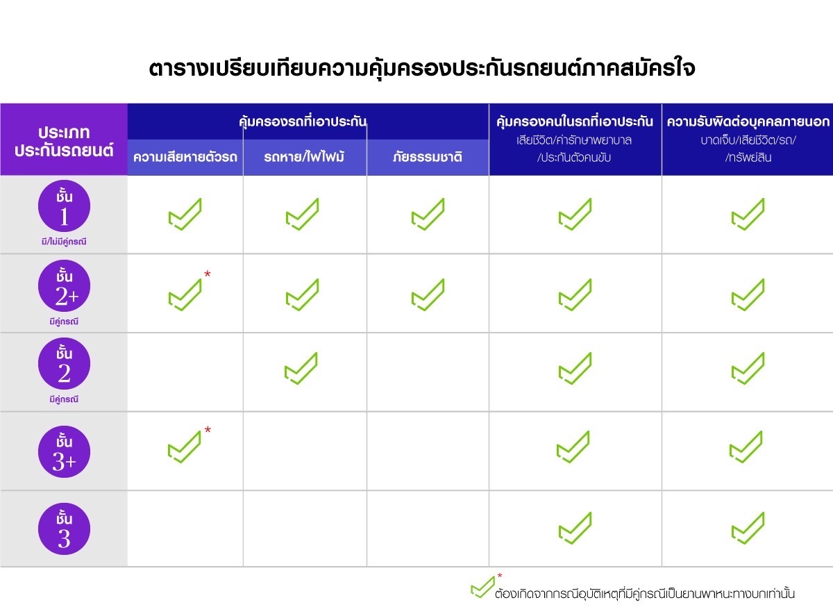 การทำประกันภัยรถยนต์ภาคสมัครใจ จะช่วยเพิ่มความคุ้มครองที่ครอบคลุมยิ่งขึ้น และเป็นหลักประกันที่ช่วยแบ่งเบาภาระค่าใช้จ่ายที่อาจเกิดขึ้นจากอุบัติเหตุบนท้องถนน ช่วยให้ ผู้ขับขี่สามารถใช้รถได้อย่างมั่นใจยิ่งขึ้น โดยสามารถเลือกประเภทของประกันที่ตอบโจทย์ความต้องการ พฤติกรรมการขับขี่ รวมถึงงบประมาณที่แตกกันของแต่ละบุคคล นอกจากนี้ยี่ห้อ รุ่น และอายุของรถยนต์ ก็เป็นอีกปัจจัยในการเลือกแผนที่เหมาะสมได้