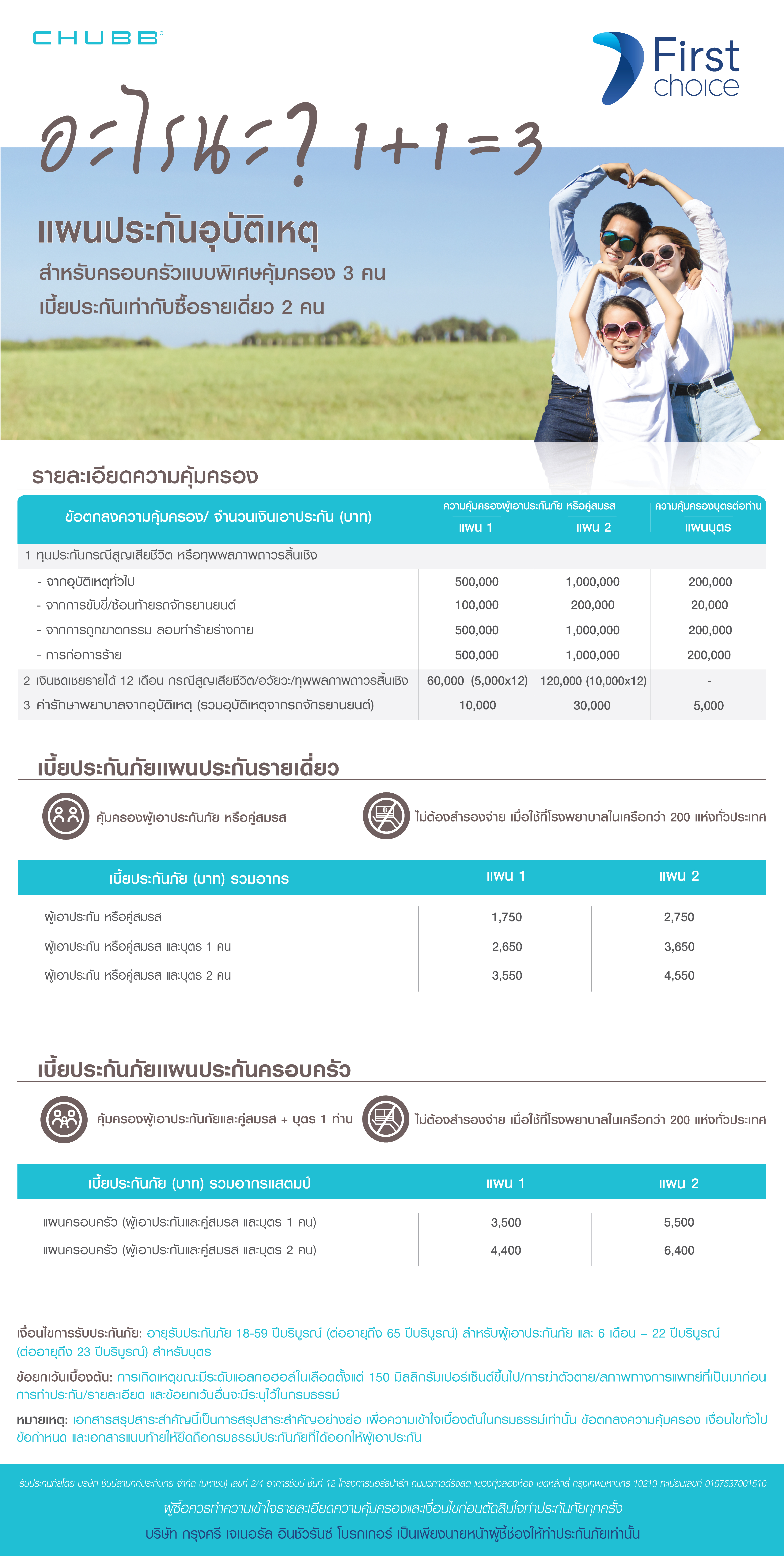 ผลิตภัณฑ์นี้เป็นแผนประกันพิเศษ สอบถามเพิ่มเติม หรือสนใจผลิตภัณฑ์ กรุณาติดต่อเคาน์เตอร์กรุงศรีฯ ที่สาขาของเฟิร์สช้อยที่ร่วมรายการเท่านั้น