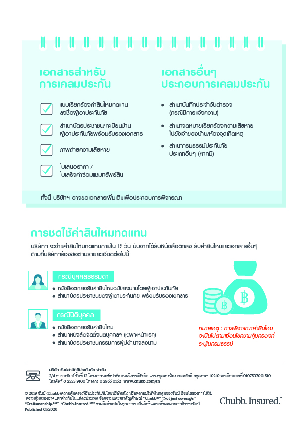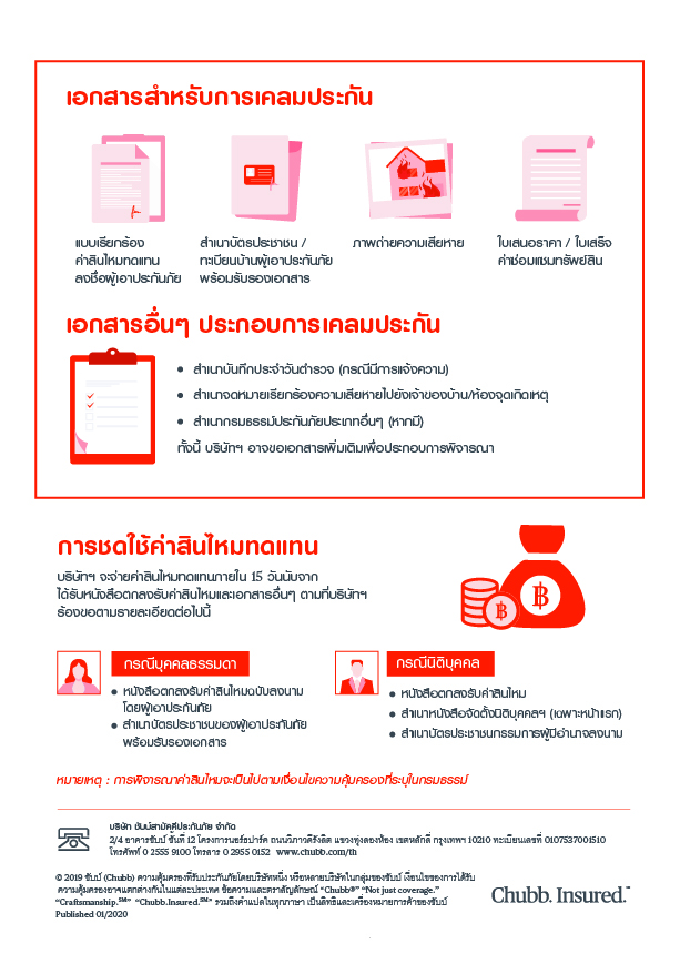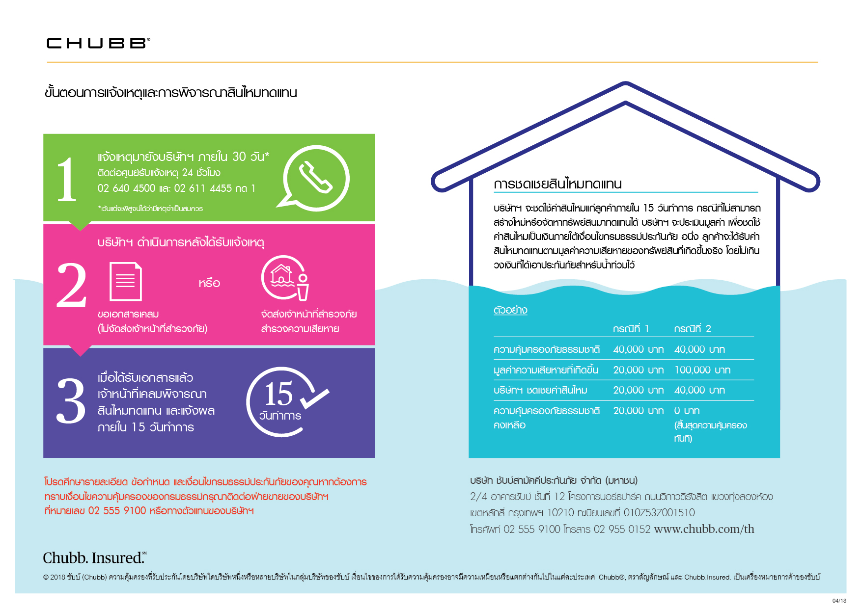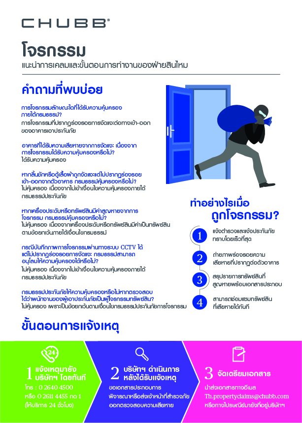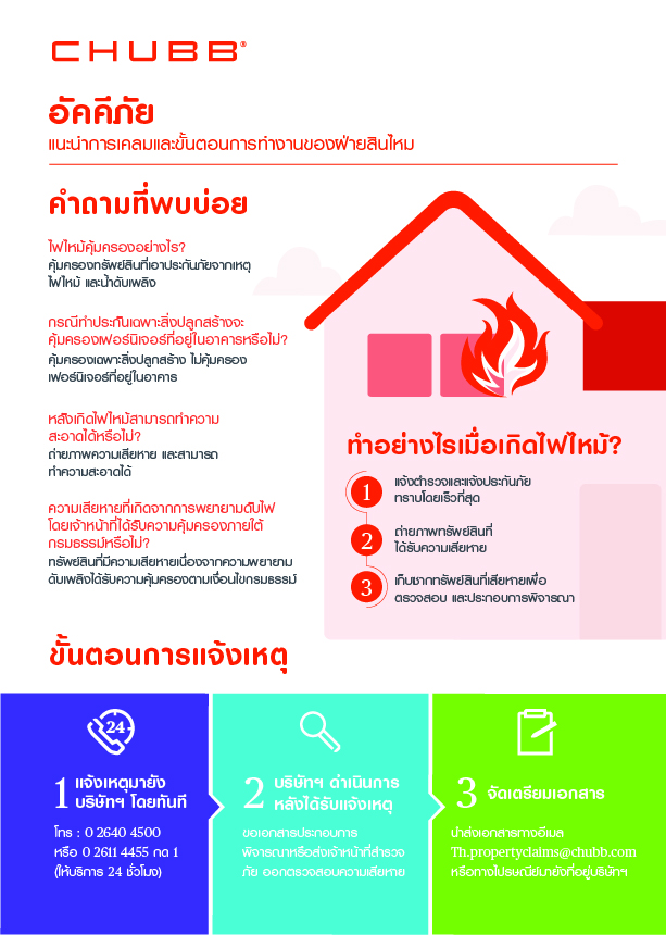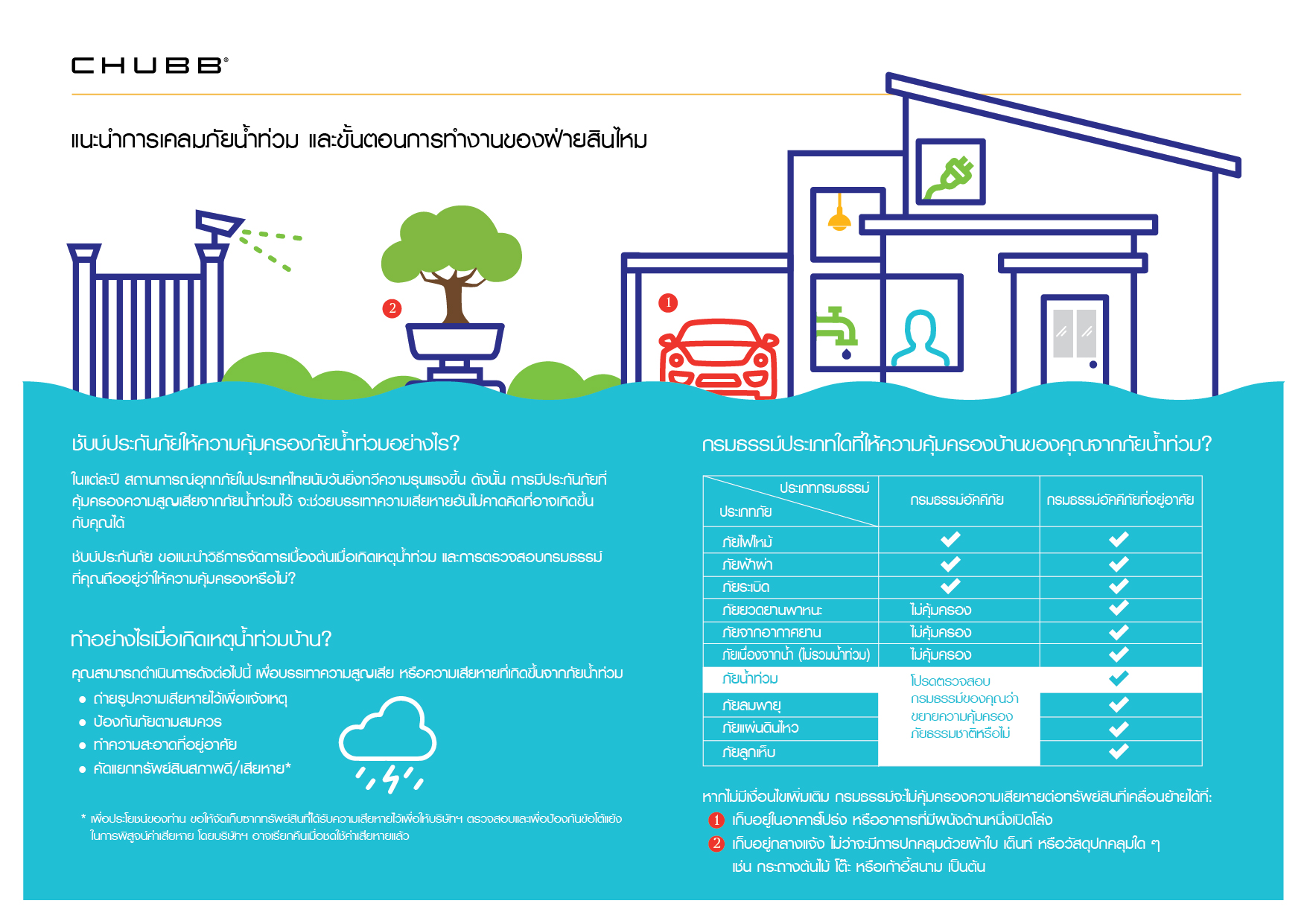 ประกันภัยบ้านอยู่อาศัย และผู้ประกอบการธุรกิจขนาดกลางและขนาดเล็ก (SME) จึงเป็นตัวช่วยสำคัญที่ทำให้ผู้ซื้อประกันภัยไปคลายกังวลได้ระดับหนึ่ง ซึ่งชับบ์ให้ความคุ้มครองความเสี่ยงภัยในหลายประเภทเพื่อตอบโจทย์ความต้องการที่หลากหลาย ได้แก่