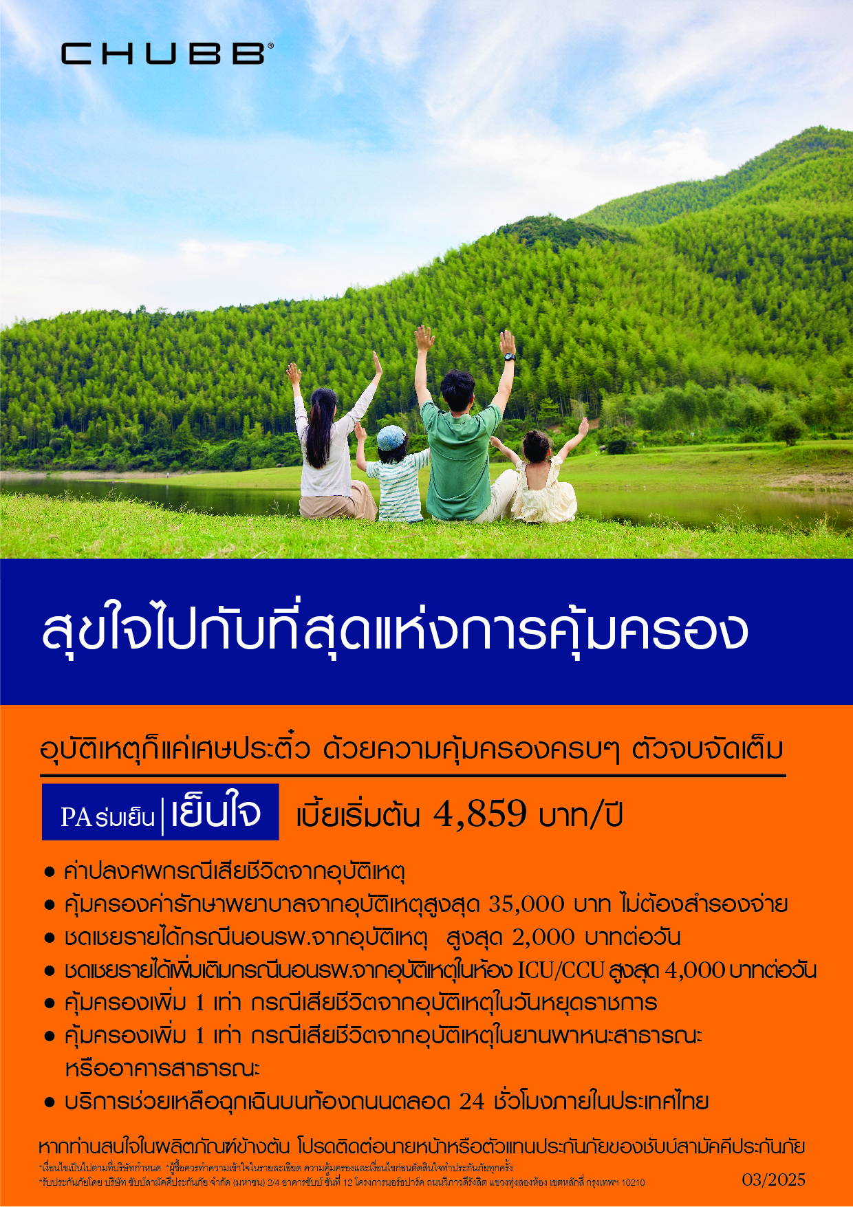 - คุ้มครองเพิ่ม 1 เท่า กรณีเสียชีวิตวันหยุด หรืออุบัติเหตุสาธารณะ