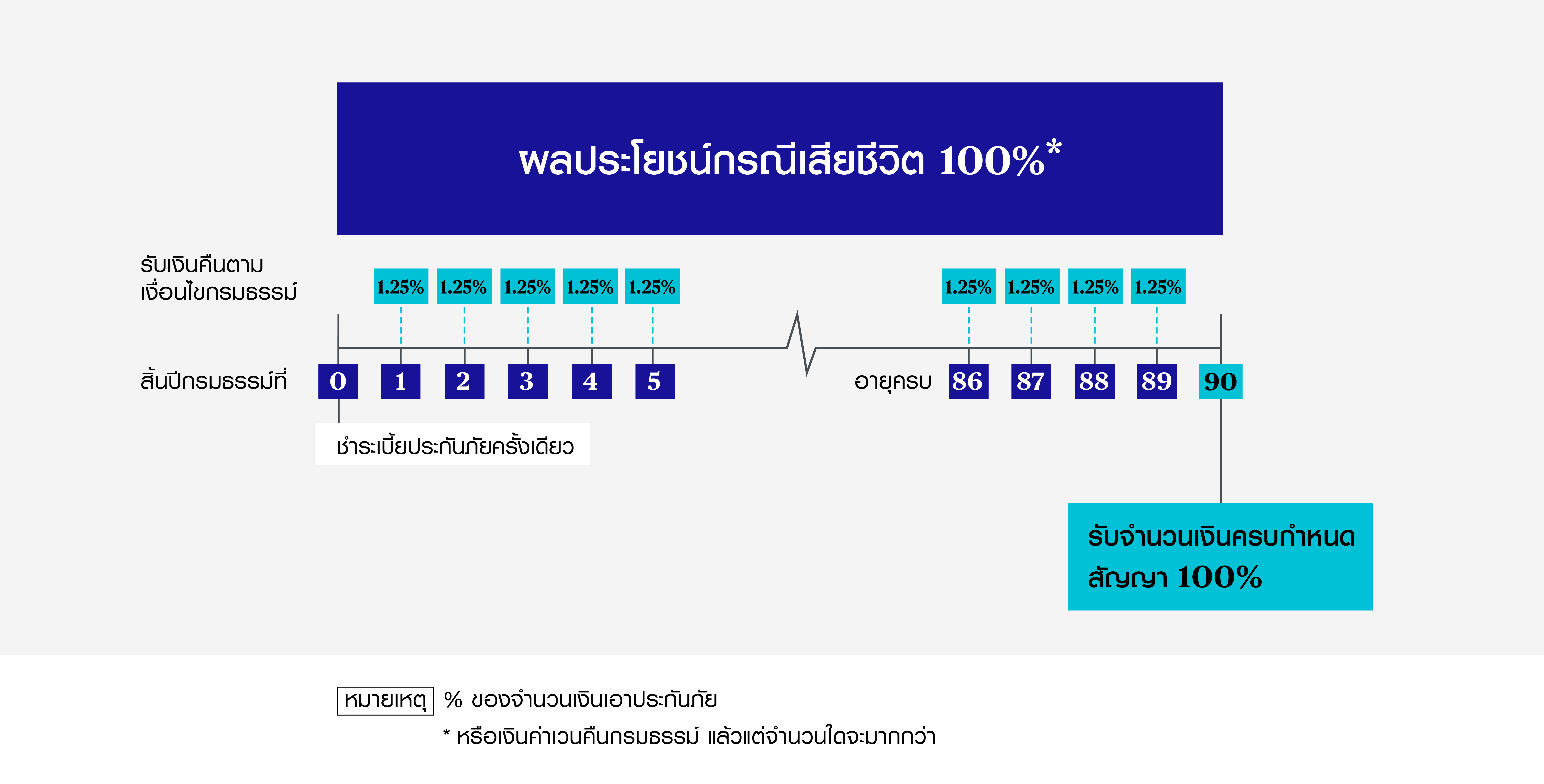 จ่ายเบี้ยเพียงครั้งเดียว คุ้มครองชีวิตยาวนาน การันตีผลตอบแทนทุกปี พร้อมสิทธิลดหย่อนภาษี