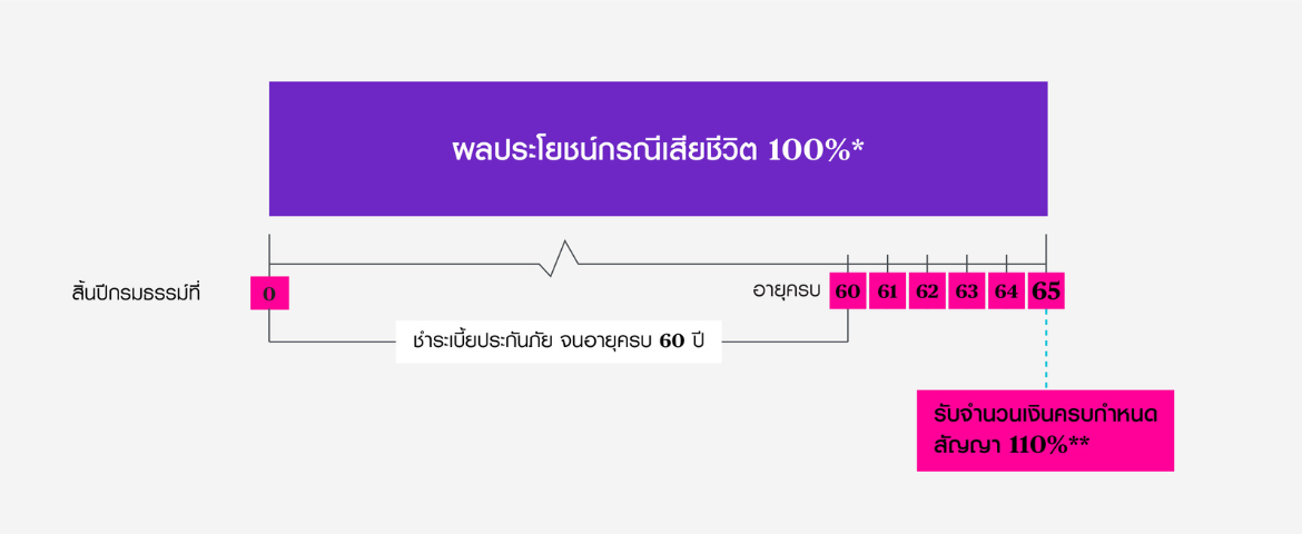สำหรับแบบประกันเกษียณออมทรัพย์ที่ให้ความคุ้มครองจนครบอายุ 65 ปี
