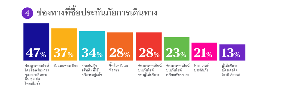 4. นักท่องเที่ยวชาวไทยมีแนวโน้มที่จะซื้อประกันภัยการเดินทางผ่านช่องทางออนไลน์พร้อมกับการจองการเดินทาง