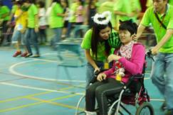 公益主題: 踏出傳愛腳步 – 於台北市大同體育館舉辦運動同樂會,照顧36名來自 天使心家族的身心障礙兒童,讓其父母能有短暫的休息。