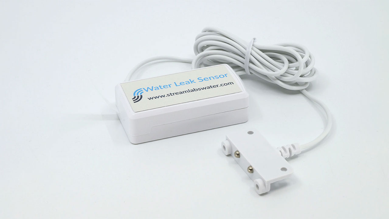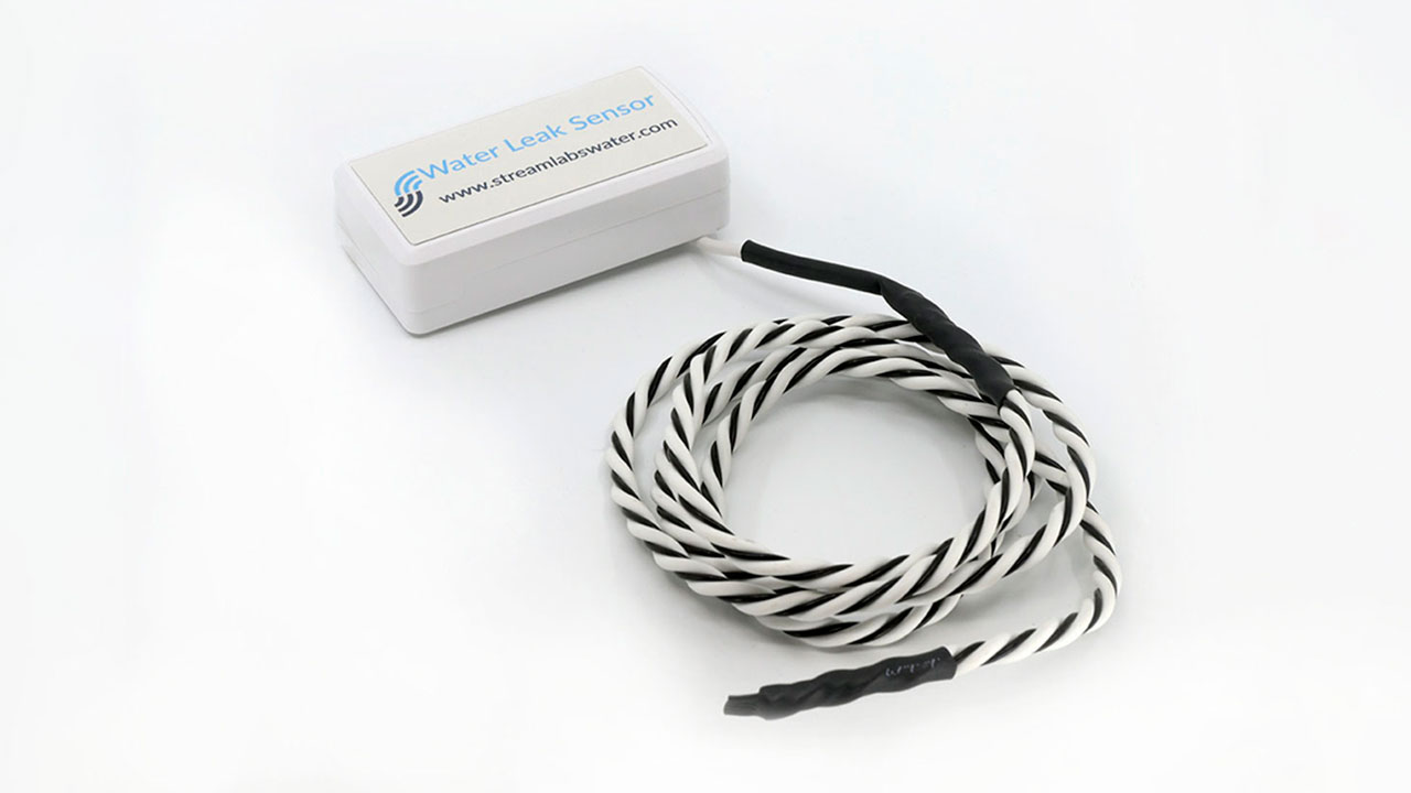 The versatile StreamLabs wireless Point of Leak Sensor has a probe at the end of a three-foot cable that detects the presence of water and can be discretely hidden out-of-sight.