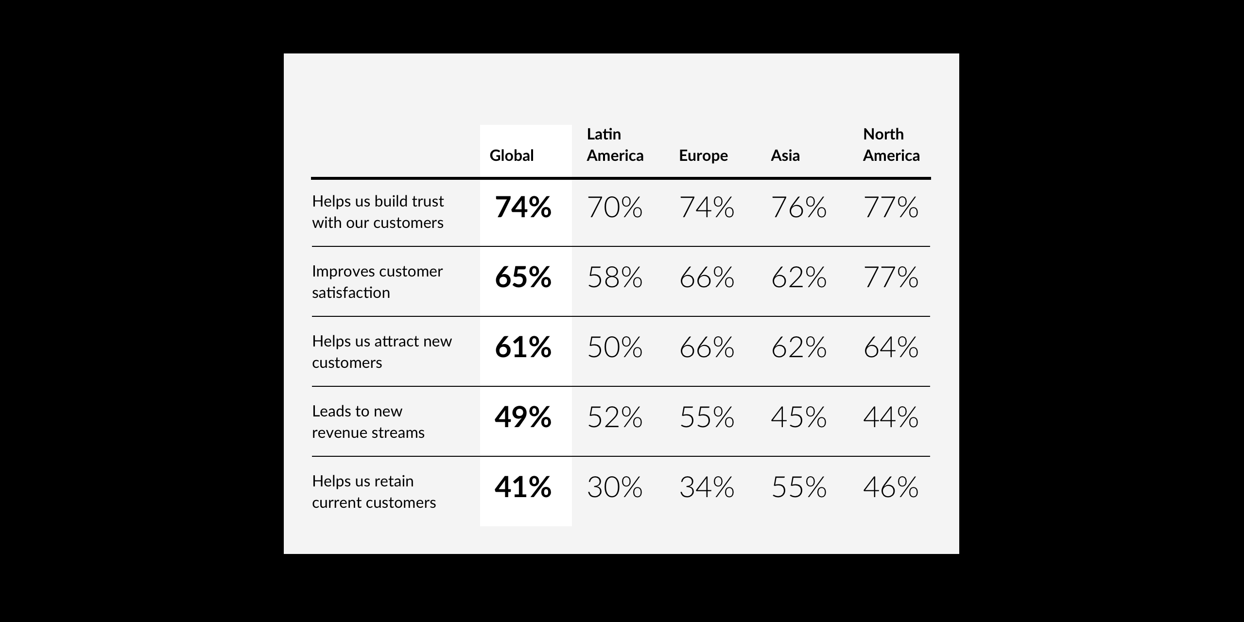 Most survey respondents, globally 66%, offer integrated insurance as part of added service value. That is one reason why financial executives globally ranked customer trust and satisfaction above direct revenue generation as the top benefits of embedded insurance. One of the reasons behind offering embedded insurance, especially for fintechs, is their desire to aggressively grow their customer base.